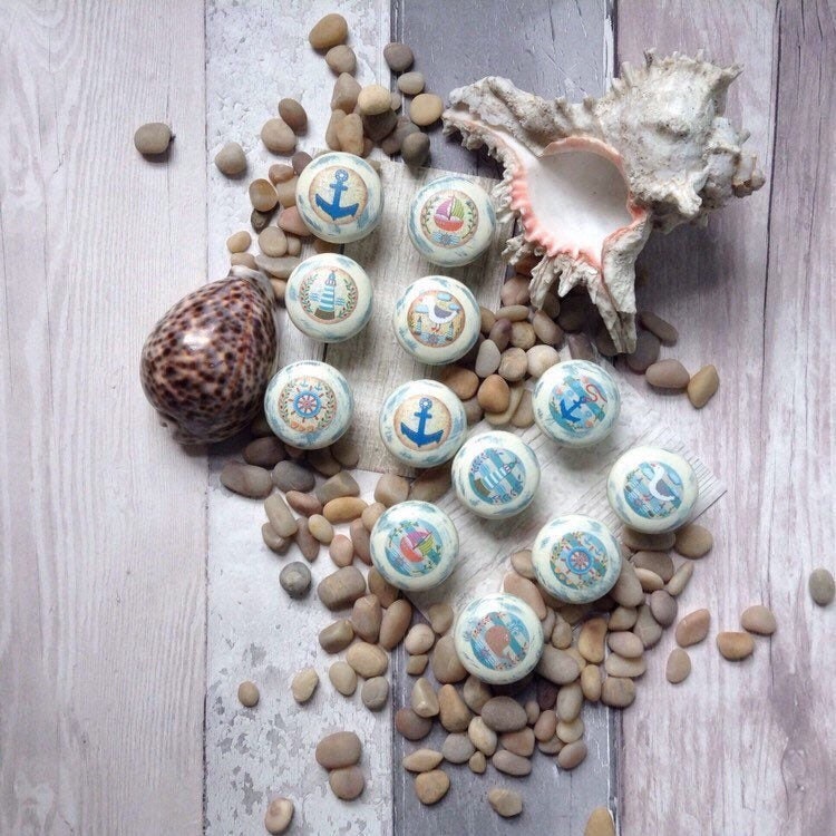 Seaside Handles Set Of 6 Drawer Handles Decoupaged Beach Etsy Uk